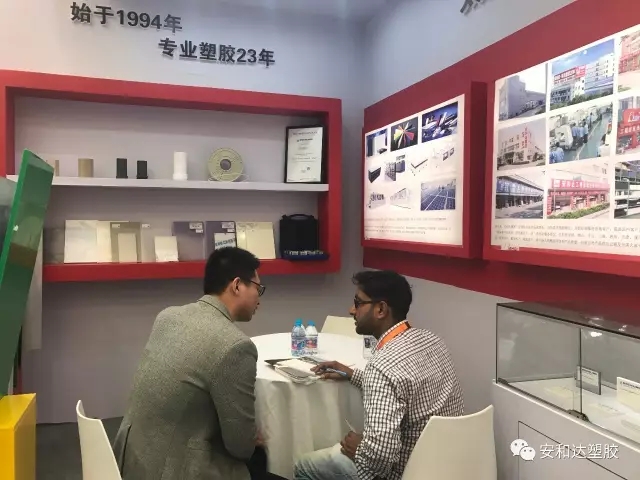 在此次展會中,安和達(dá)展示了各種光伏產(chǎn)業(yè)應(yīng)用塑膠產(chǎn)品,如:PVDF、PP、PVC、PEEK、PTFE、POM、PPS等各種型材,獲得中外客戶一致好評。